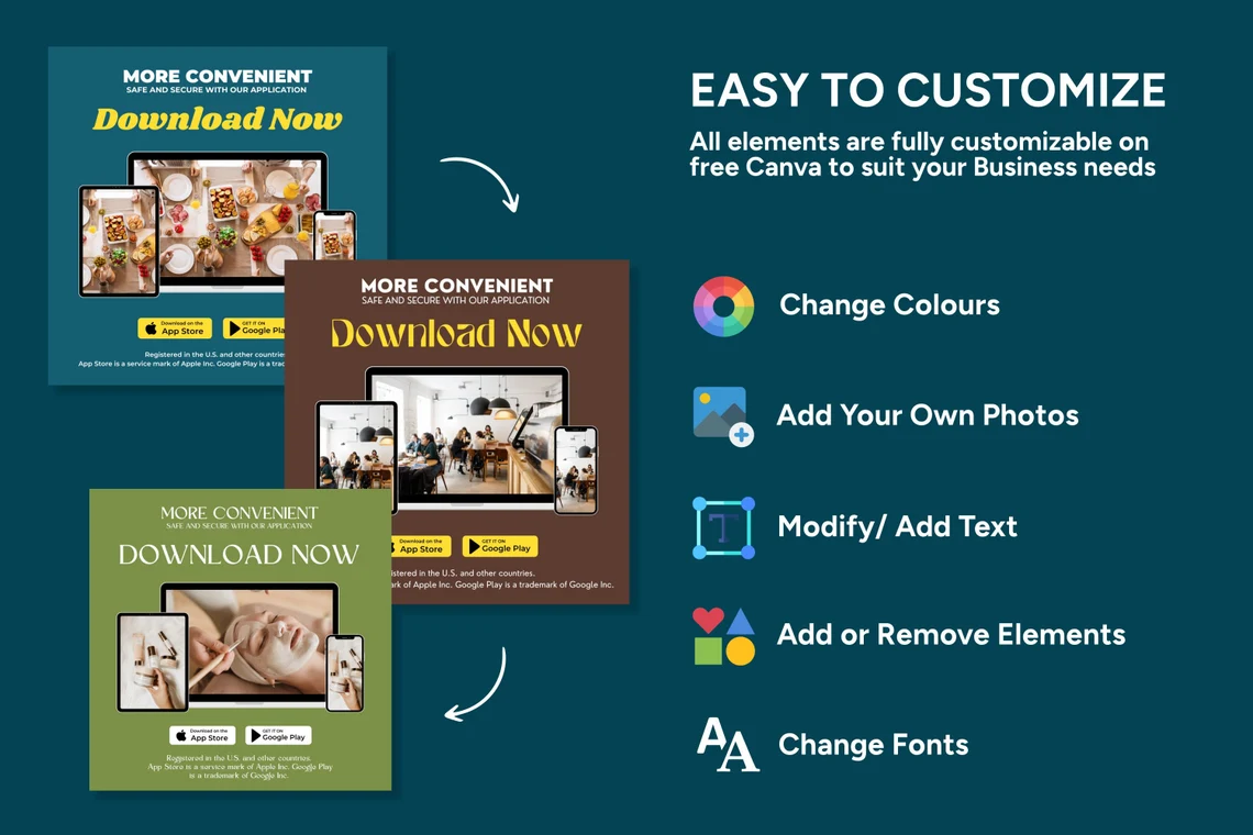 VERY CUSTOMIZABLE & SUPER SIMPLE ~ Edit in Canva using a laptop, desktop, or even with a phone. Canva is a free (with option to upgrade) online graphic design platform, used to create social media graphics, presentations, posters, documents and other visual content. Add your own logo, delete, move, and/or add any of your own text or elements that you see fit!