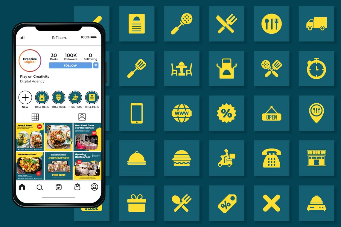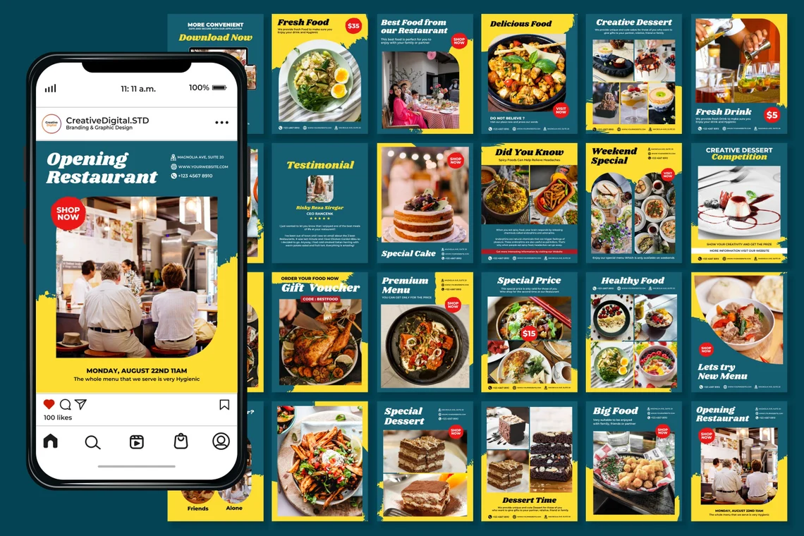 READY MADE CONTENT ~ Used for any food and beverages business such as Fine Dining Restaurants, Brasserie, Fast Service Restaurants, Traditional Restaurants, Bistros, Mom and Pop Restaurants, Steak Houses, Bars & Pubs, Cafes, Themed Restaurants, Bakeries, Kebab Restaurants, Pizza Restaurants, Ethnic Restaurants, Restaurants in Shopping Centres, Catering Businesses and more related service looking to elevate their social media.