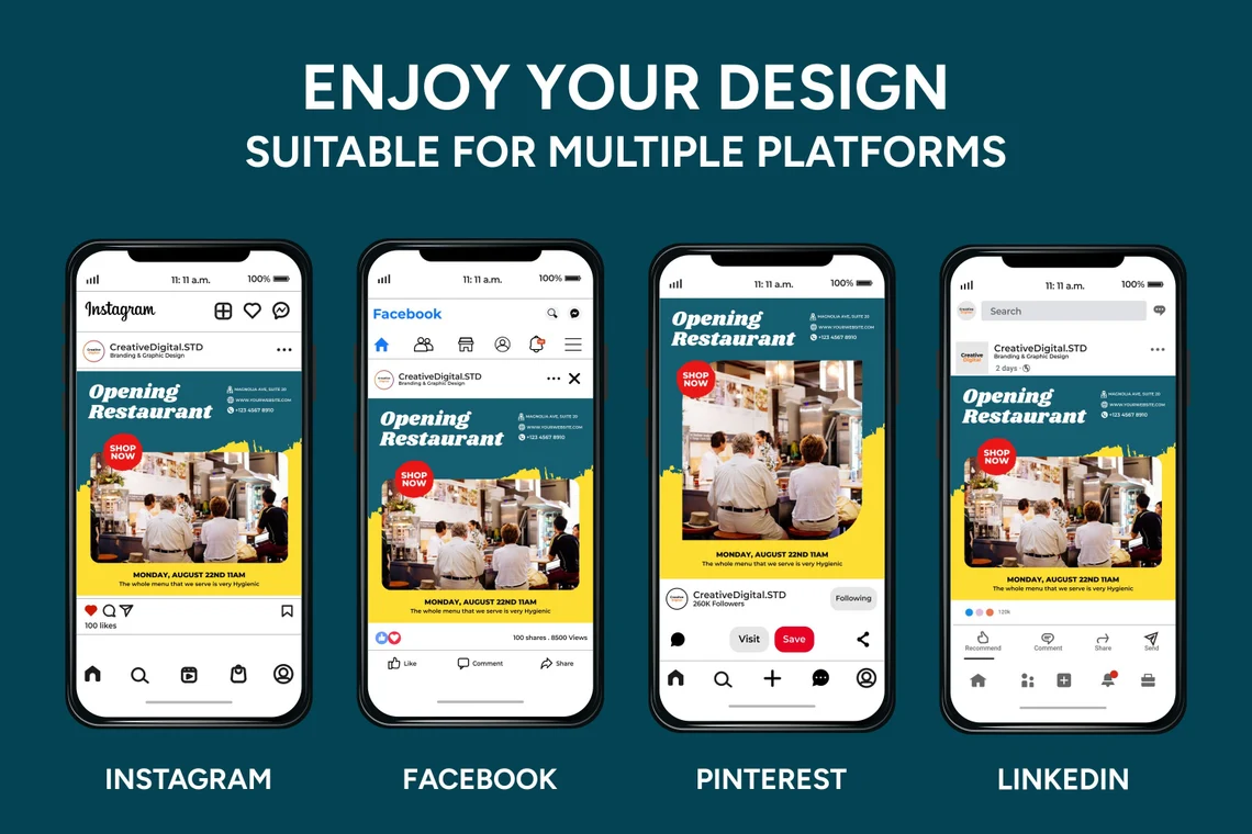 New Styles Available! Branding Visual Kit for All Business! Market your Social Media. Attract more followers with build authority, education, social proof, engagement, and more content visualization you get at Creative Digital STD. Lastly, encourage them to order your product/service 🙂