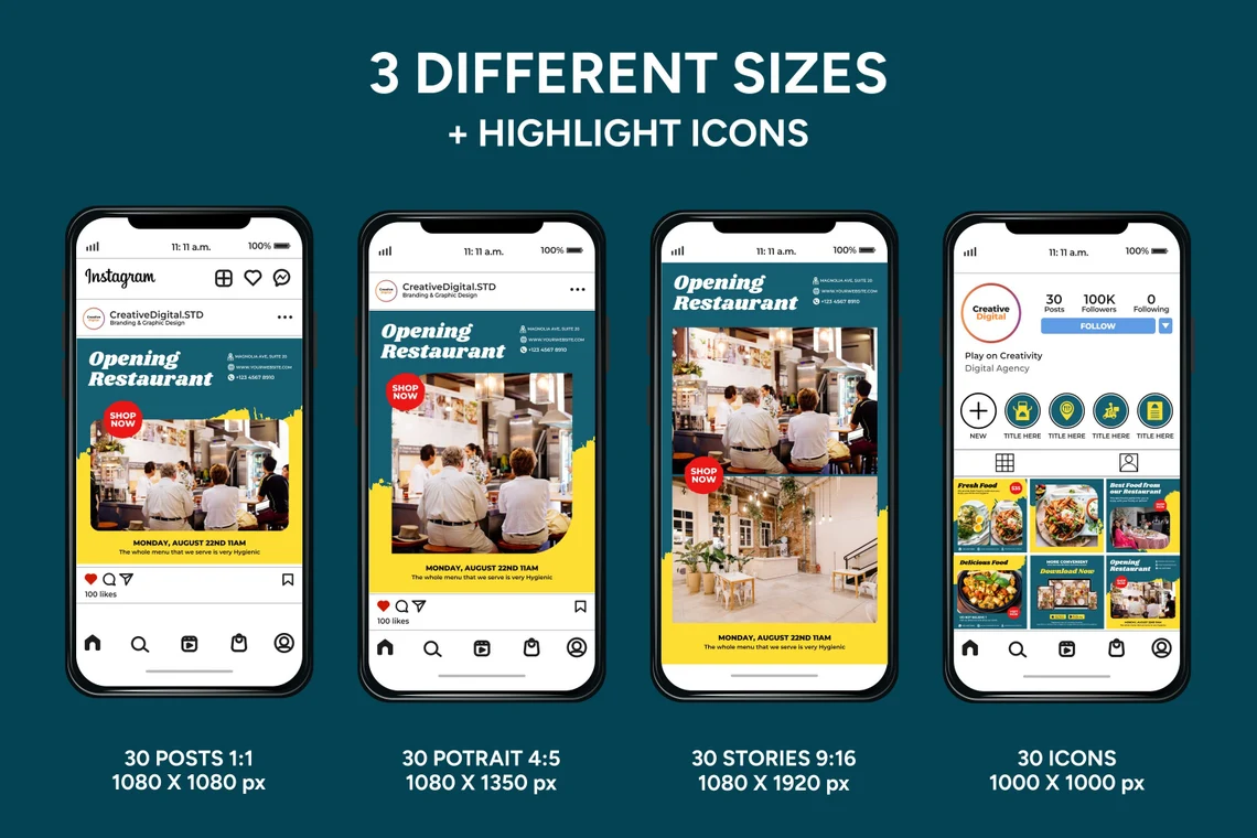 INSTANT DOWNLOAD ~ Once purchased, you will be guided to click on a link that will direct you to your Restaurant Instagram templates! This is a digital product, no physical product will be sent. Instructions/Tutorials are included